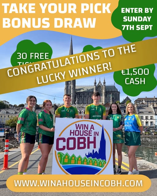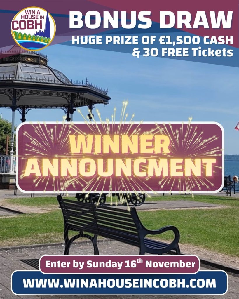 August Bank Holiday Bonus Draw winner – James O’Donnell from Co. Cork, won their choice between 20 FREE Win A House In Cobh tickets or €1,000 cash